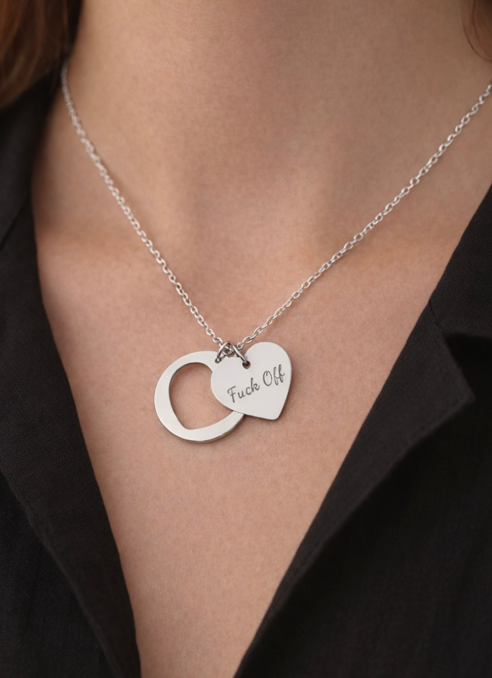 Clean cutout lettering and a minimalist silhouette keep it looking sweet and wearable, while the message does all the work. Lightweight, low-profile, and perfect for layering, it’s ideal for anyone who prefers their boundaries subtle, stylish, and permanently on display.
